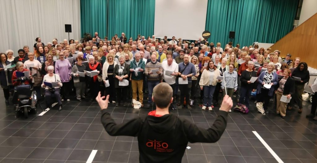 Repetitie met 275 koorleden uit 10 Almeerse koren voor de opening van het Jubileumjaar in Almere Haven. Natuurlijk is OperaFlevoland er ook bij.